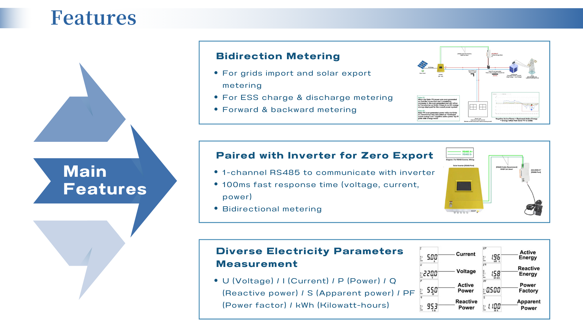 Medição Atual: 5a 、 80a, 120a, 200a, 300a, 3*5a 、 3 × 80a, 3 × 120a, 3 × 200a, 3 × 300a VOLTAGE: 3 × 220/380V 、 3 × 230/400V 、 3 × 277/480V Freqüência 45 ~ 65Hz Taxa de resposta ≤100ms Consumo de energia < 0,2VA Precisão ± 0,5% Interface e protocolo de comunicação Interface RS485 e Modbus RTU |